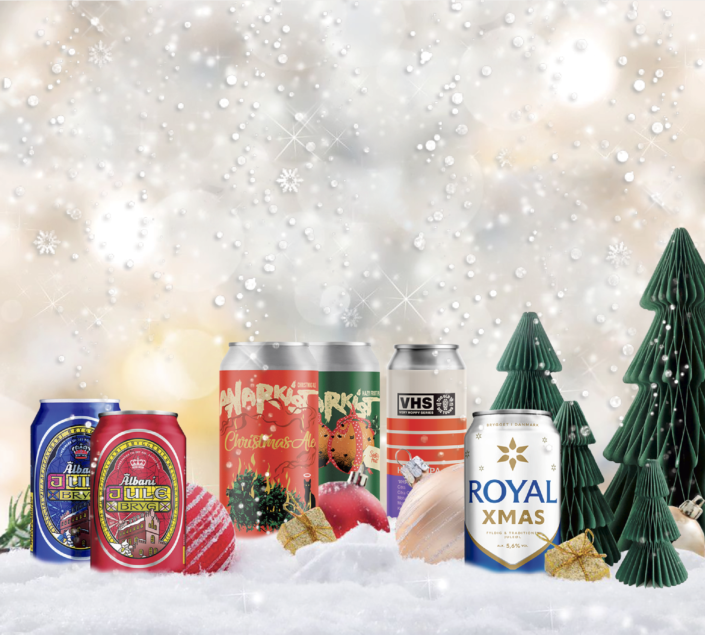 Vælg mellem Royal XMAS, Albani Blålys, Albani Rødhætte, Anarkist Christmas Ale, Anarkist Santa's Fruit & TOTDY Holiday Rewind