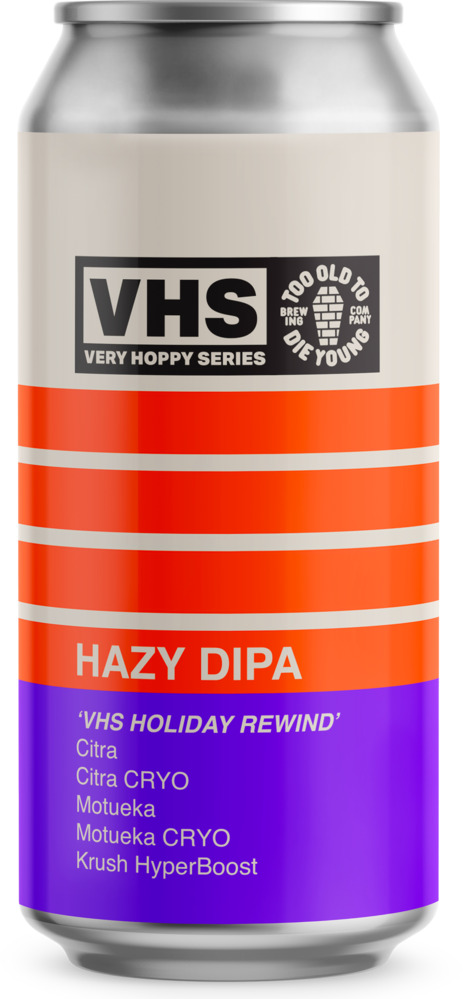 VHS Holiday Rewind er en nostalgisk Hazy Double IPA fra Very Hoppy Series – VHS Holiday Rewind er super balanceret og har en cremet mundfylde, der udgør det perfekte lærred for at showcase de super frugtige humler Krush og Motueka, der står på et solidt fundament af Citra.